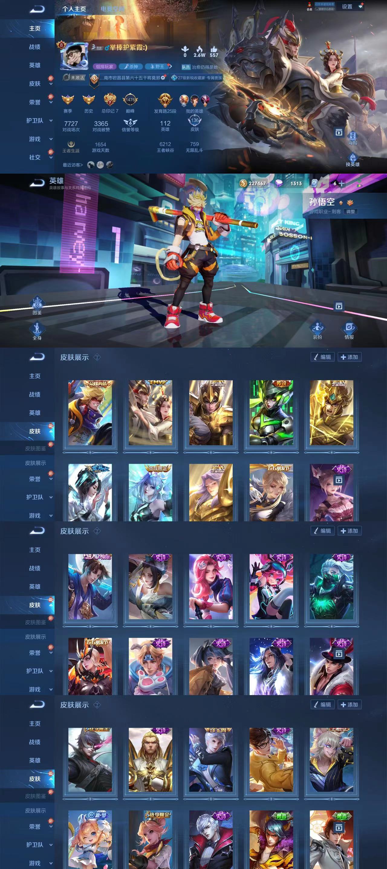 安卓QQ 有二次【皮肤数量】:132;【限定皮肤】:孙行者;...